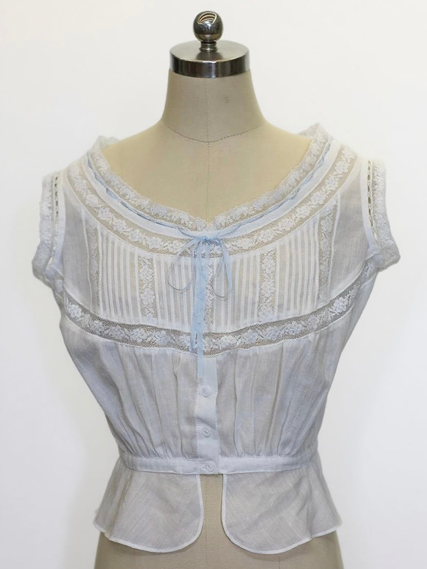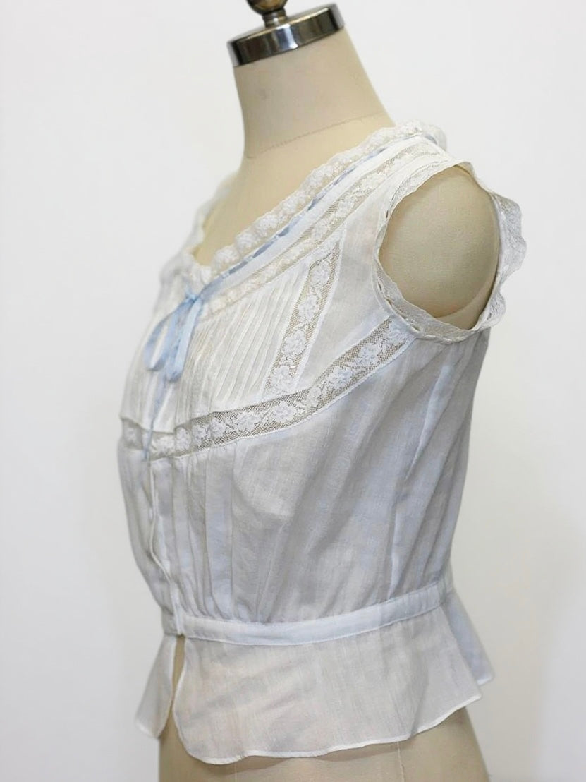 • Trims: silk ribbon, natural shell buttons, cotton-lace blend (65% cotton, 35% polyester, pre-shrunk)